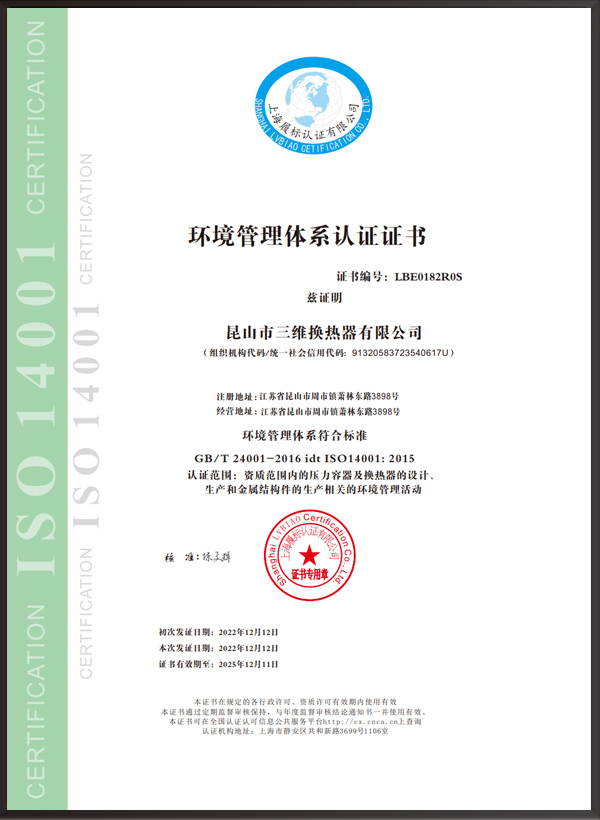 昆山市三維換熱器有限公司注冊(cè)資本5000萬(wàn)元,資產(chǎn)2.1億元,公司地址位于江蘇省昆山市周市鎮(zhèn)蕭林東路3898號(hào),法人代表為顧安生,公司設(shè)有技術(shù)部、生產(chǎn)部、檢驗(yàn)部。